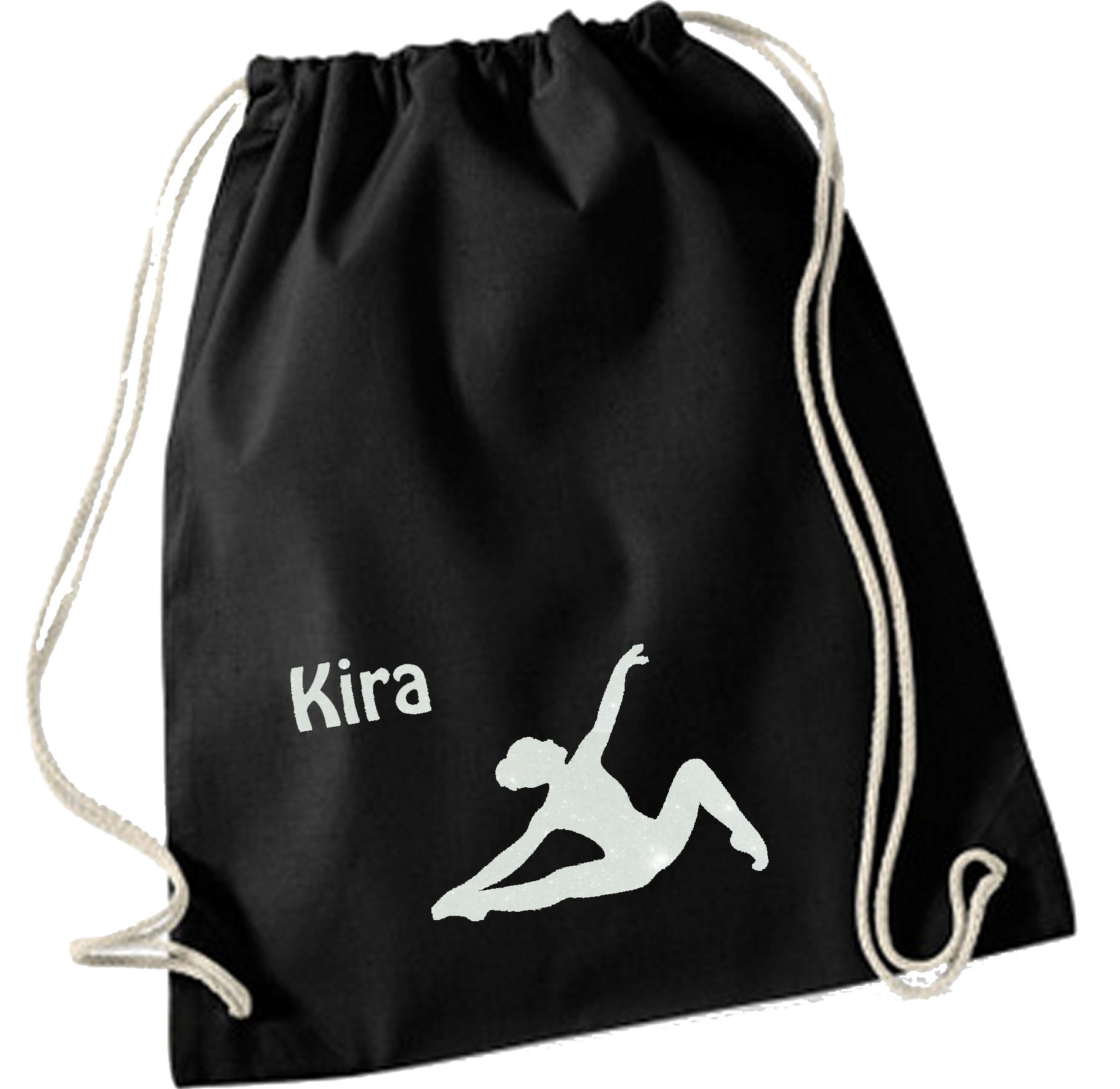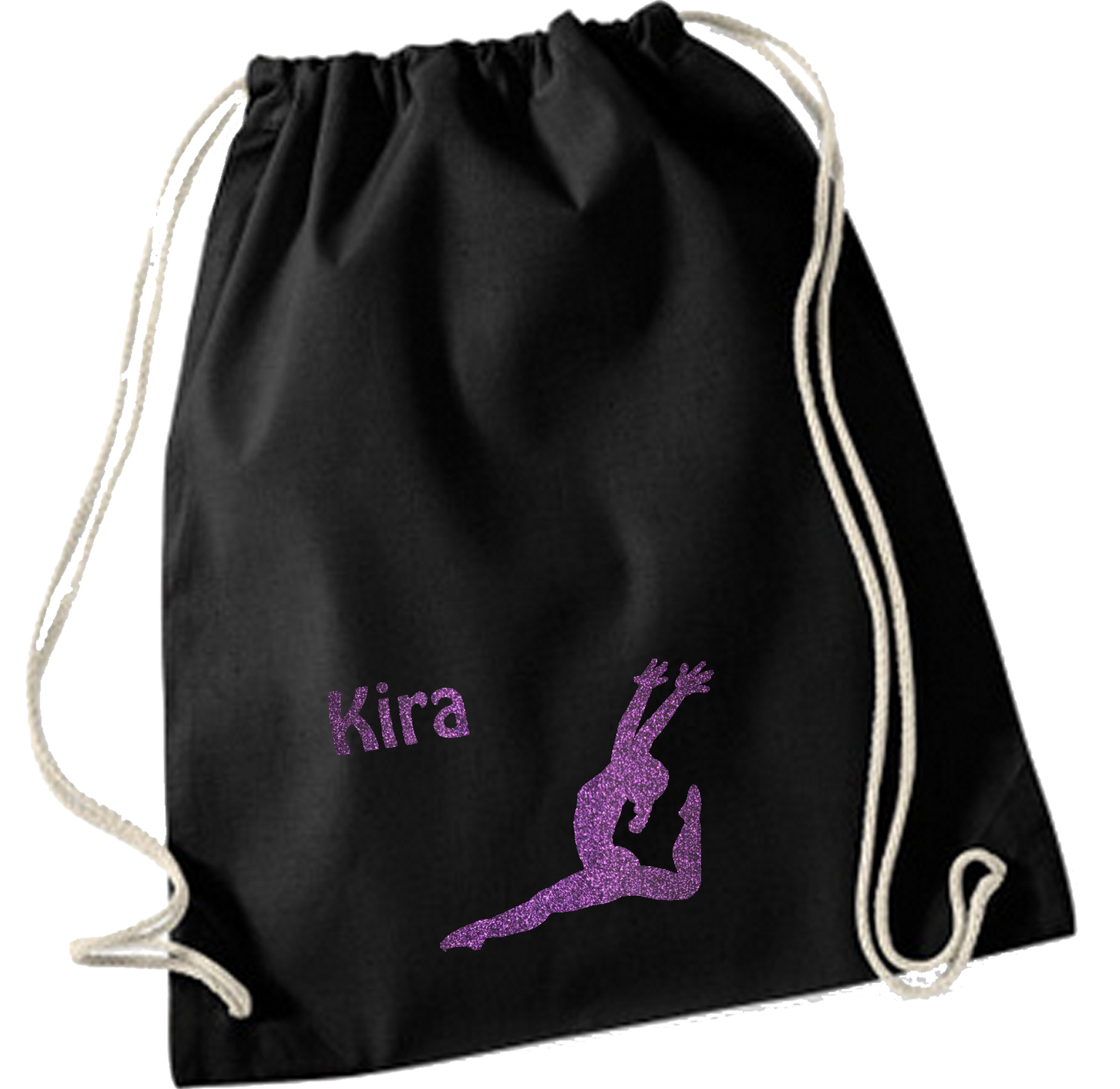 Robuster Turnbeutel aus 100% hochwertiger Baumwolle in einer Größe von ca. 37x46cm mit robusten Zugbändern. Die Beutel können mit einem Turnmotiv und einem Namen in vielen funkelnden Glitterfarben oder auch mit normalen, nicht glitternden Folien bedruckt werden. Auch ein individueller Aufdruck in Vereinsoptik ist grundsätzlich möglich.