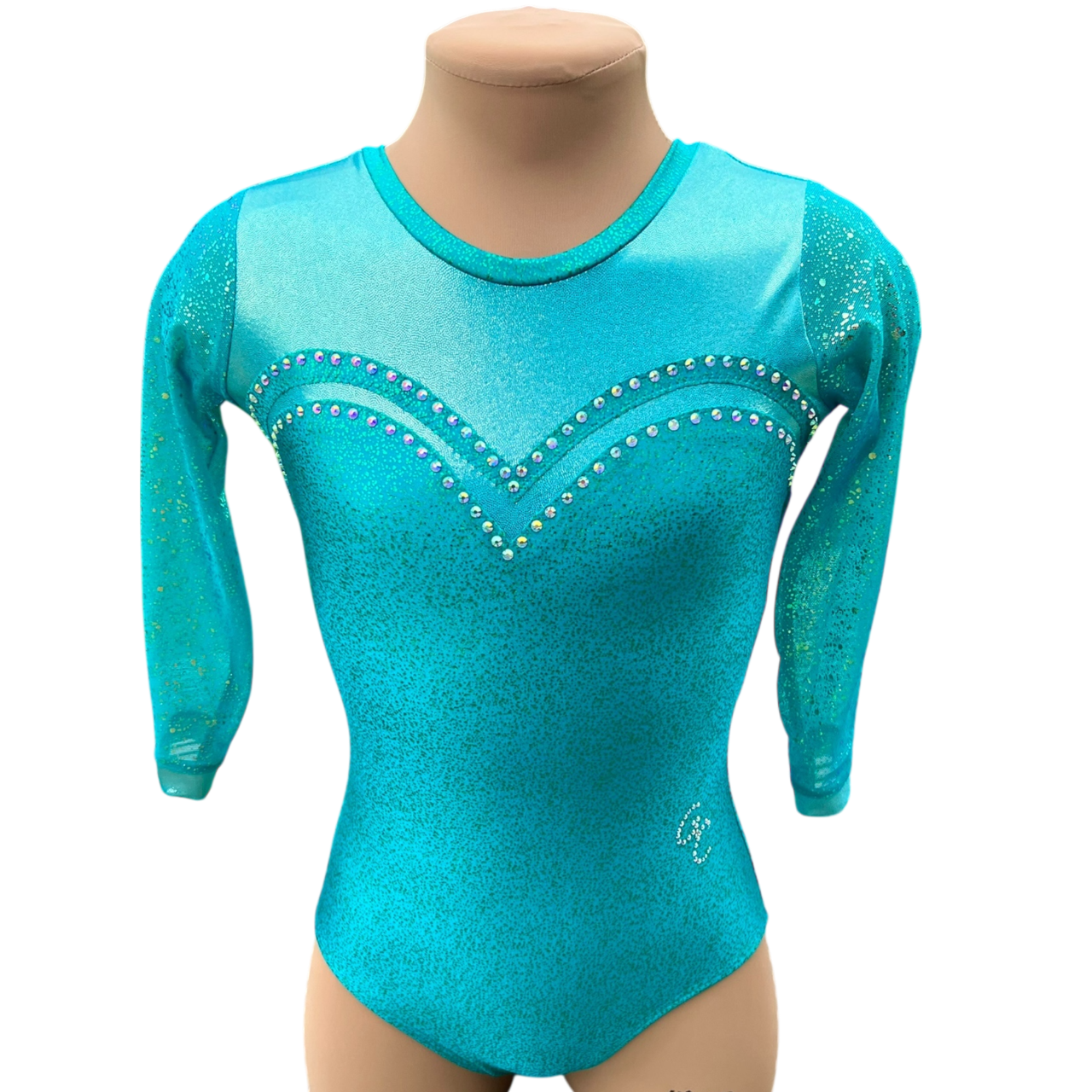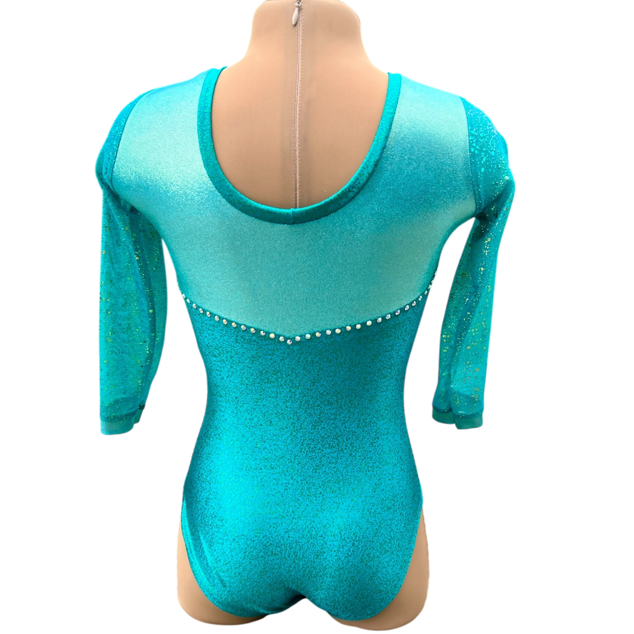 - Langarmanzug aus bi-elastischem Lycra Stoffen Jade dunkel Holo shine und und Jade hell shine, Ärmel Glitzernetz jade