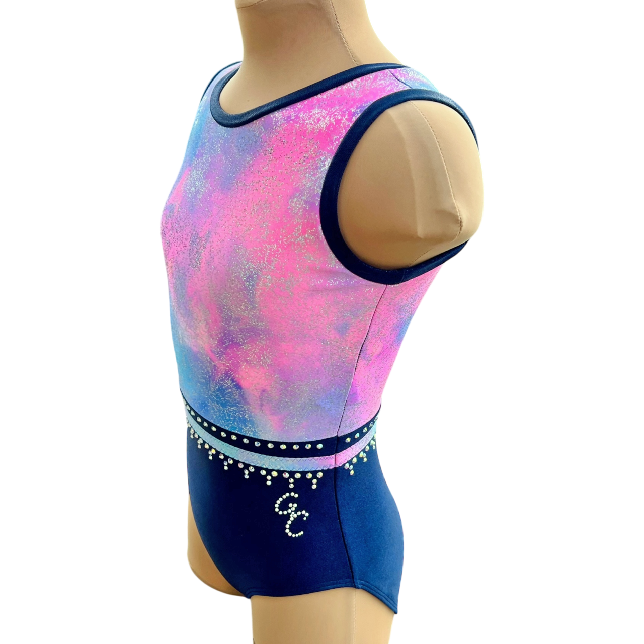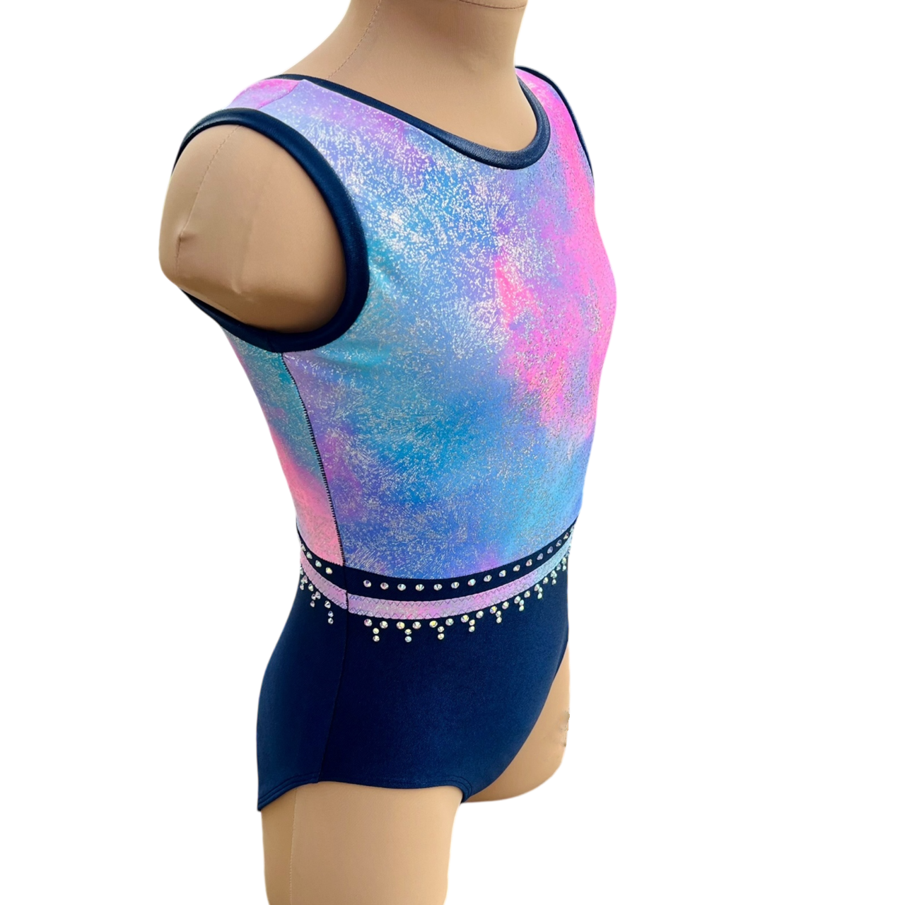"Marlene" glitzert ganz fantstisch! Der Anzug wird aus bi-elastischem Lycra Holo Glitter in Bonbonfarben mit einem dunkelblauen Lycra shine im unteren Bereich für euch geschneidert.