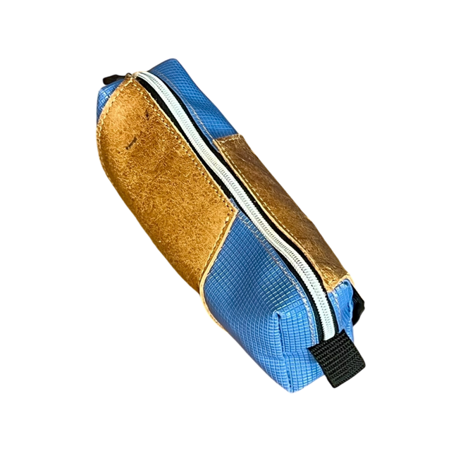 Handgefertigtes Federmäppchen aus Turnmattenstoff und Leder