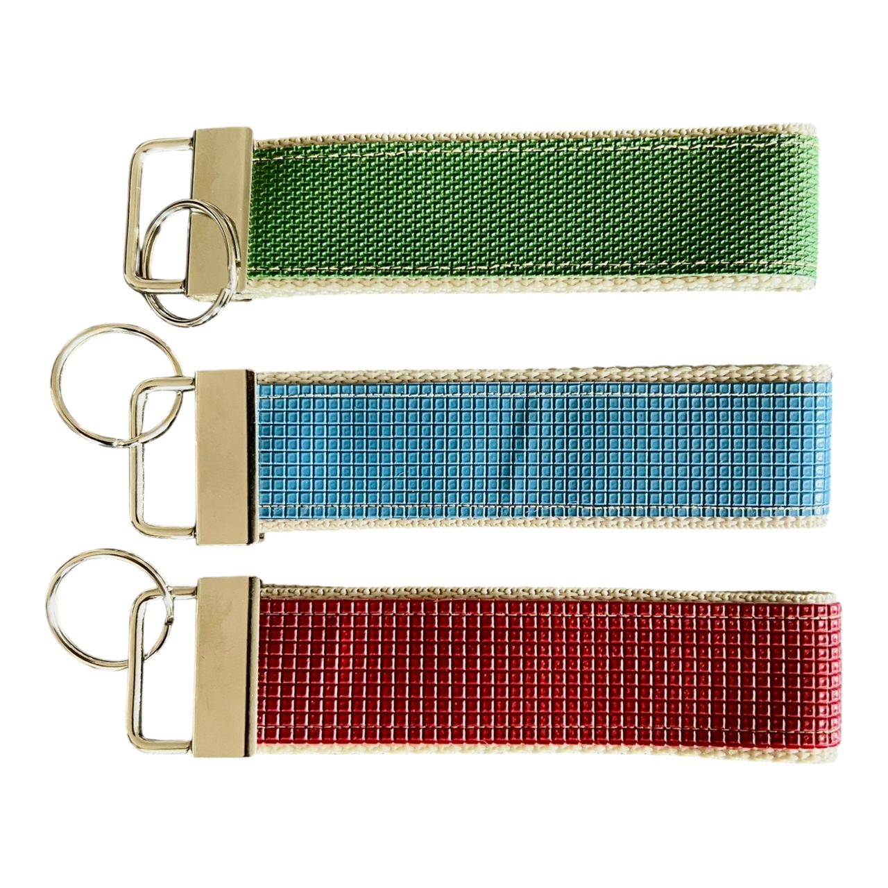 Handgefertigter Schlüsselanhänger aus Turnmattenstoff und Gurtband