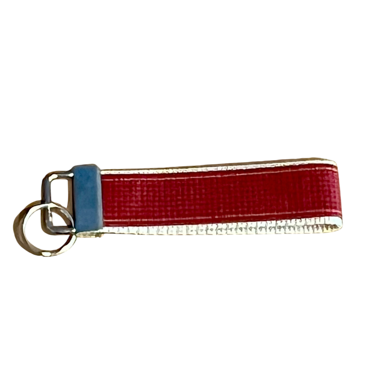 Dieser handgefertigte Schlüsselanhänger aus original Turnmattenstoff und Gurtband ist ca. 13 x 3 cm groß.