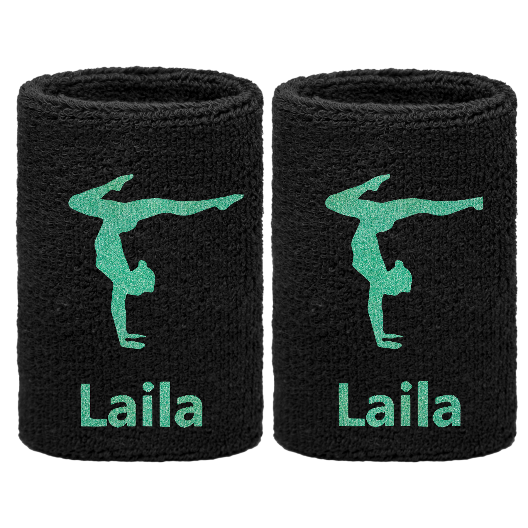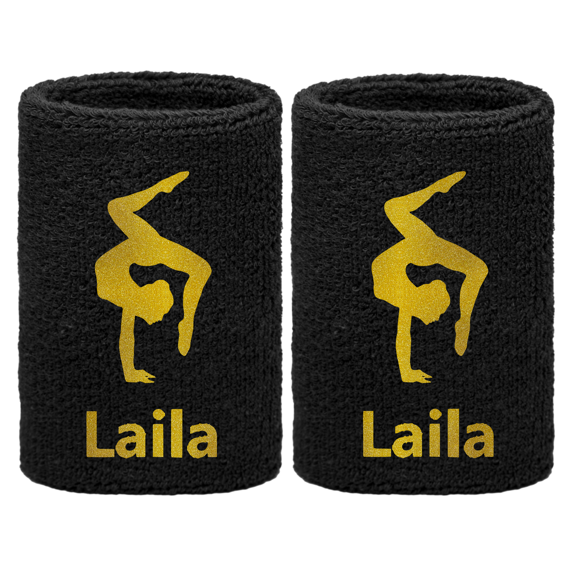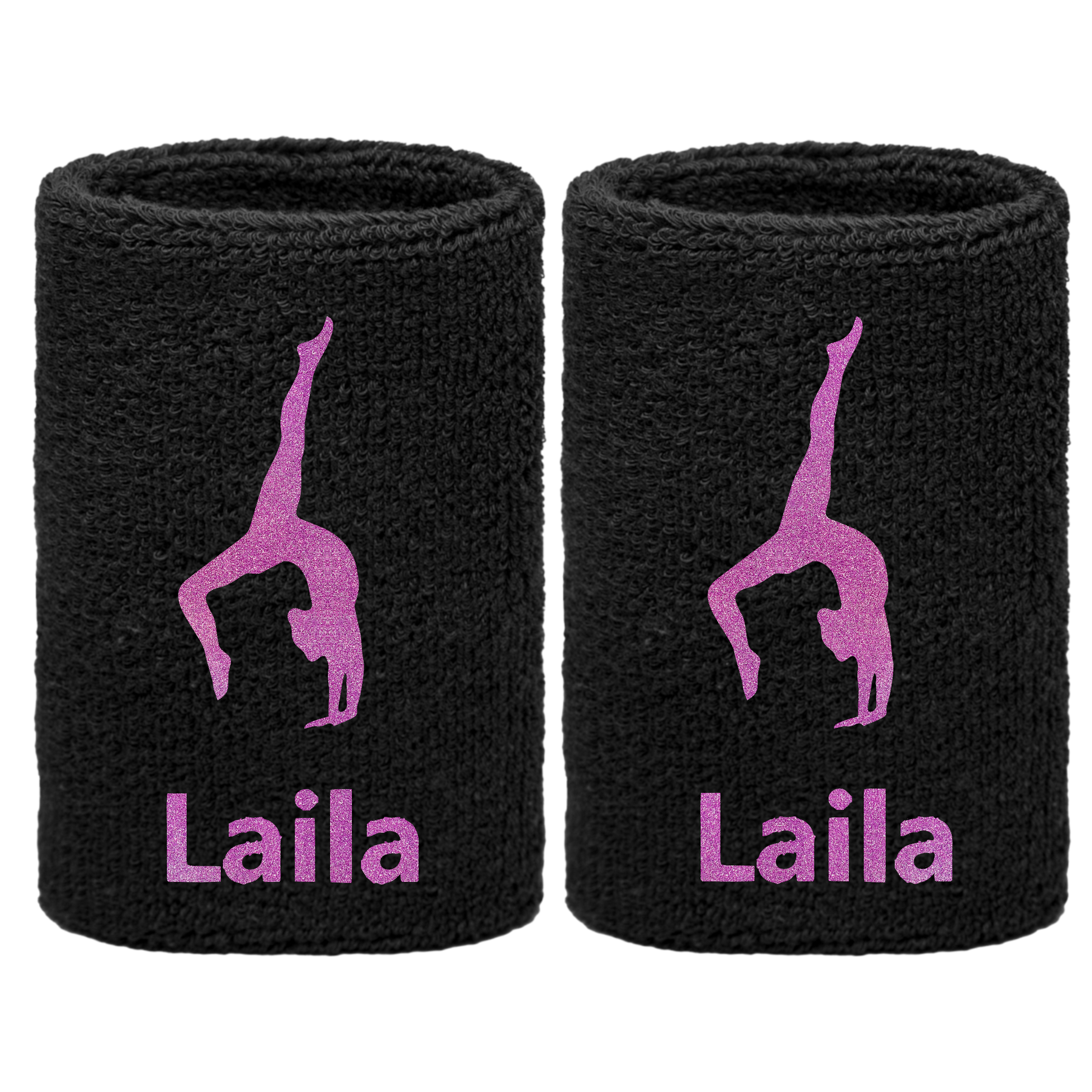 Diese Schweißbänder sind 11-12 cm breit, aus hochwertigem Frottee mit Elasthan und weden bedruckt mit einer Turnerin & einem Namen aus Glitterfolie. Sie sind bei 30 °C waschbar.