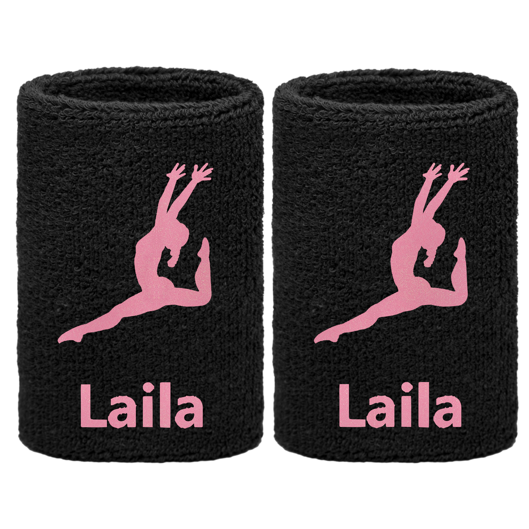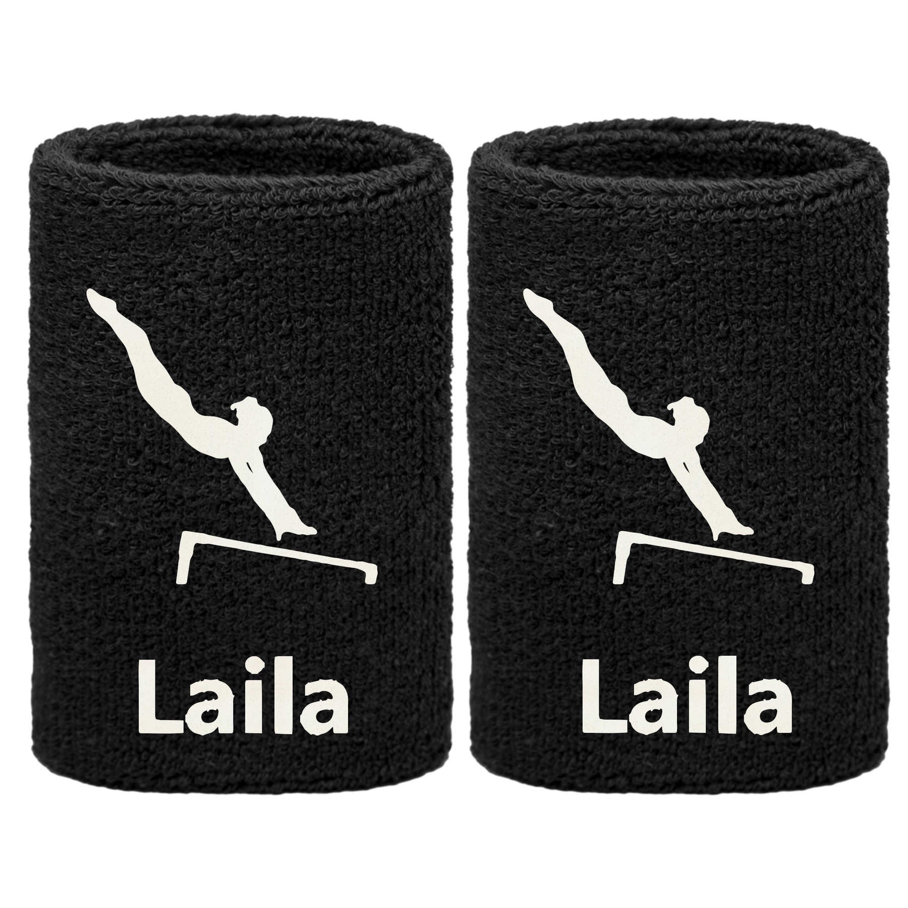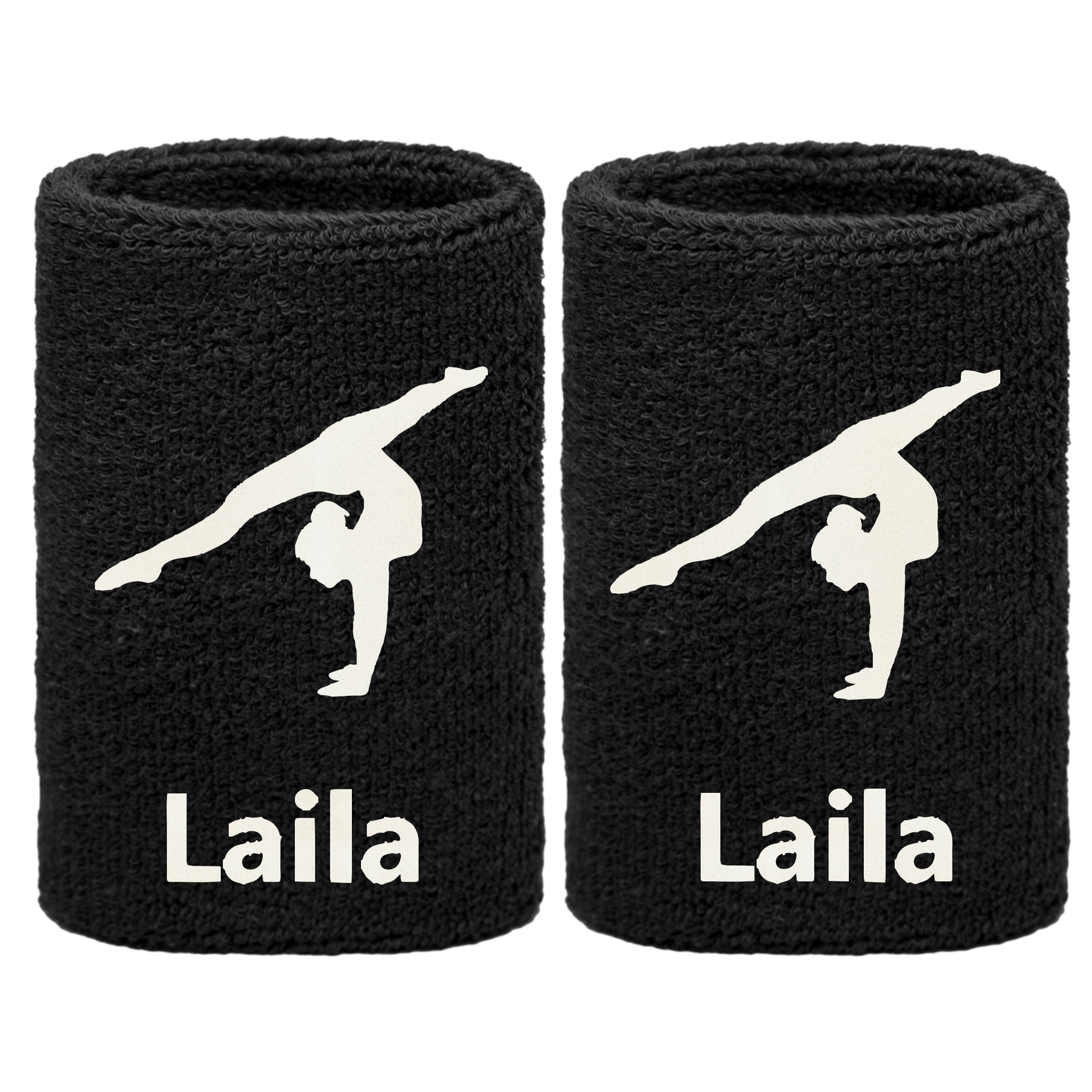 Diese Schweißbänder sind 11-12 cm breit, aus hochwertigem Frottee mit Elasthan und weden bedruckt mit einer Turnerin & einem Namen aus Glitterfolie. Sie sind bei 30 °C waschbar.